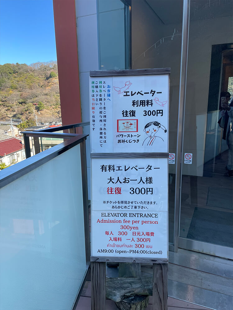 エレベーターは有料ですが、チケットを購入するとパワーストーン入りのおみくじもセットでもらえるのでお得!
