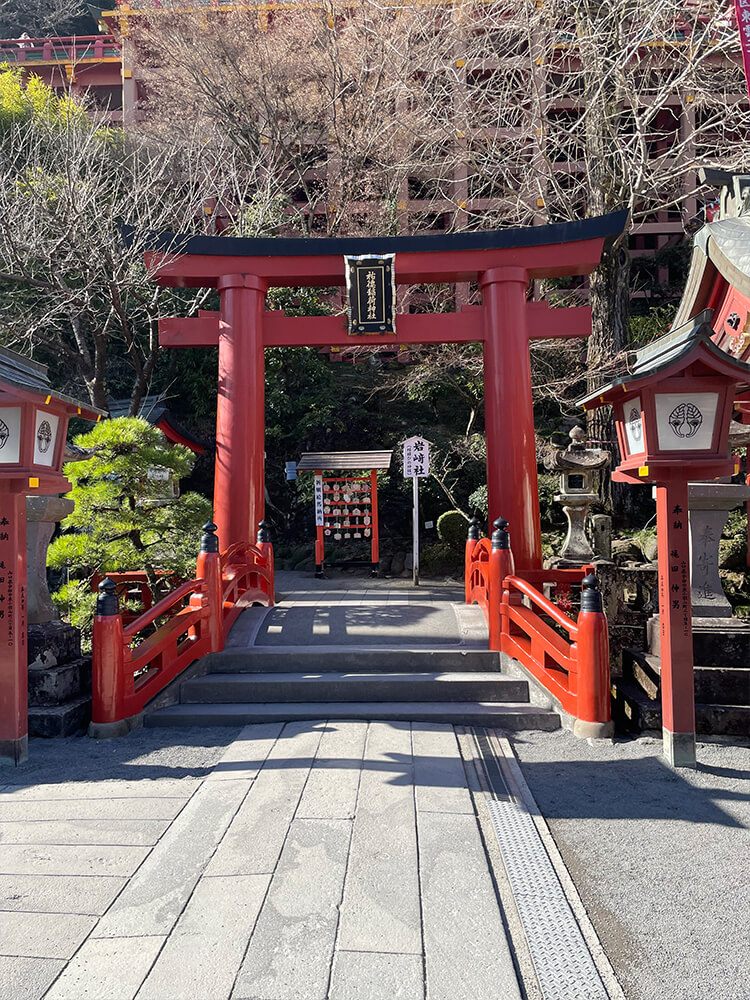 朱塗りの大鳥居を別角度から