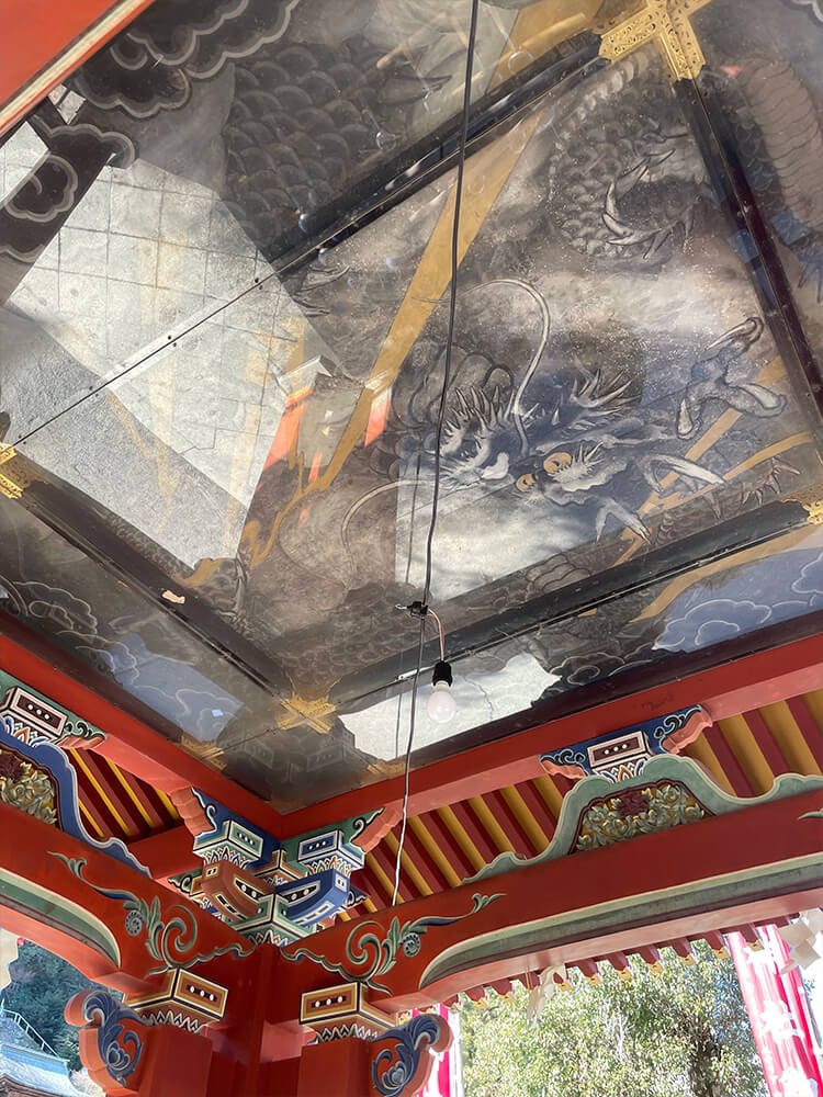 手水舎の天井には、なんと龍の浮世絵が!